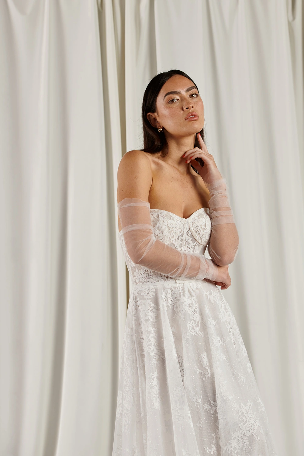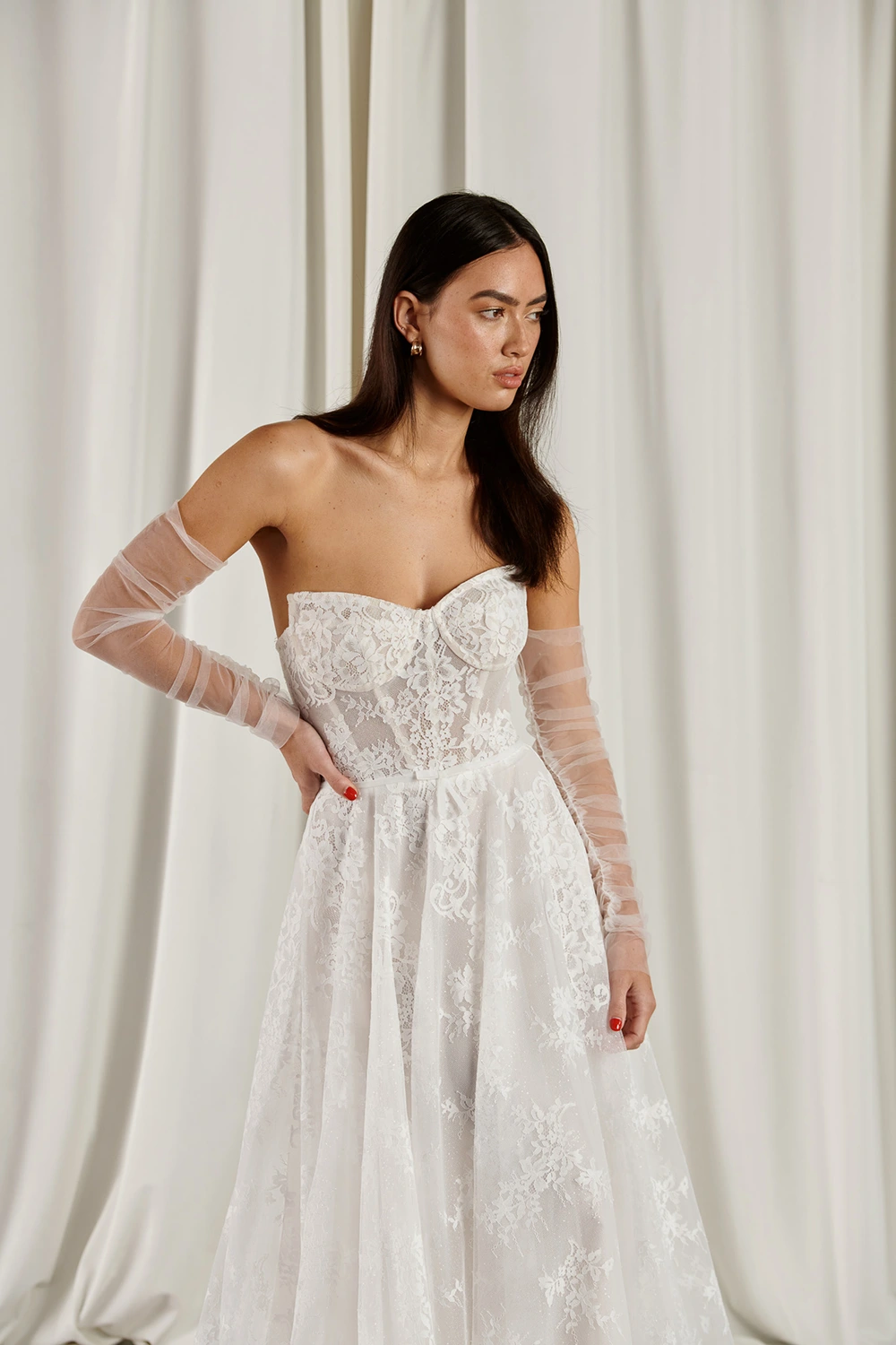 Das Modell WA23203 von Cizzy Bridal Australia ist ein elegantes A-Linien Brautkleid mit optionalen Tüllärmeln.