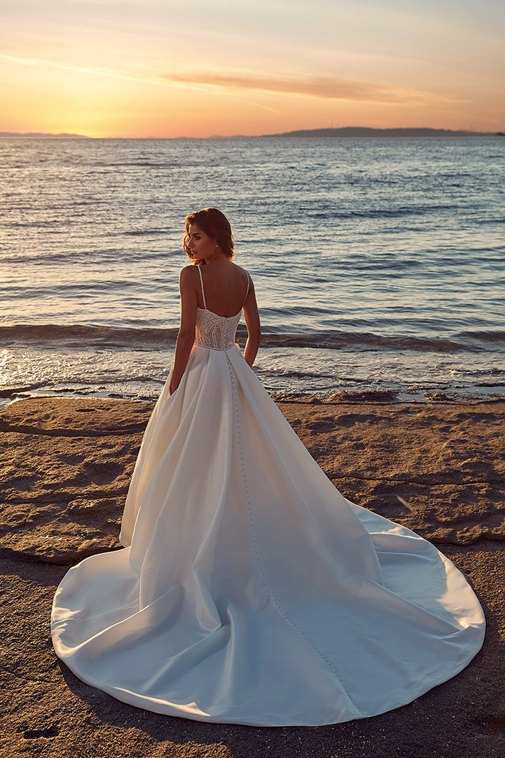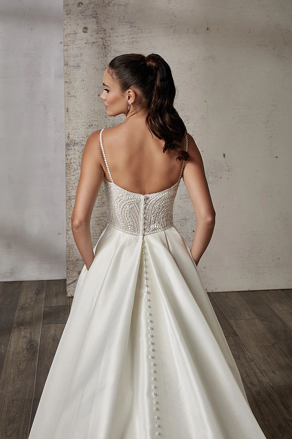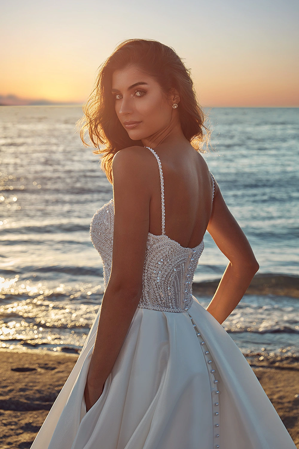 Das Modell Kiana von Eddy K ist ein cleanes A-Linien Brautkleid mit einem funkelndem Oberteil.
