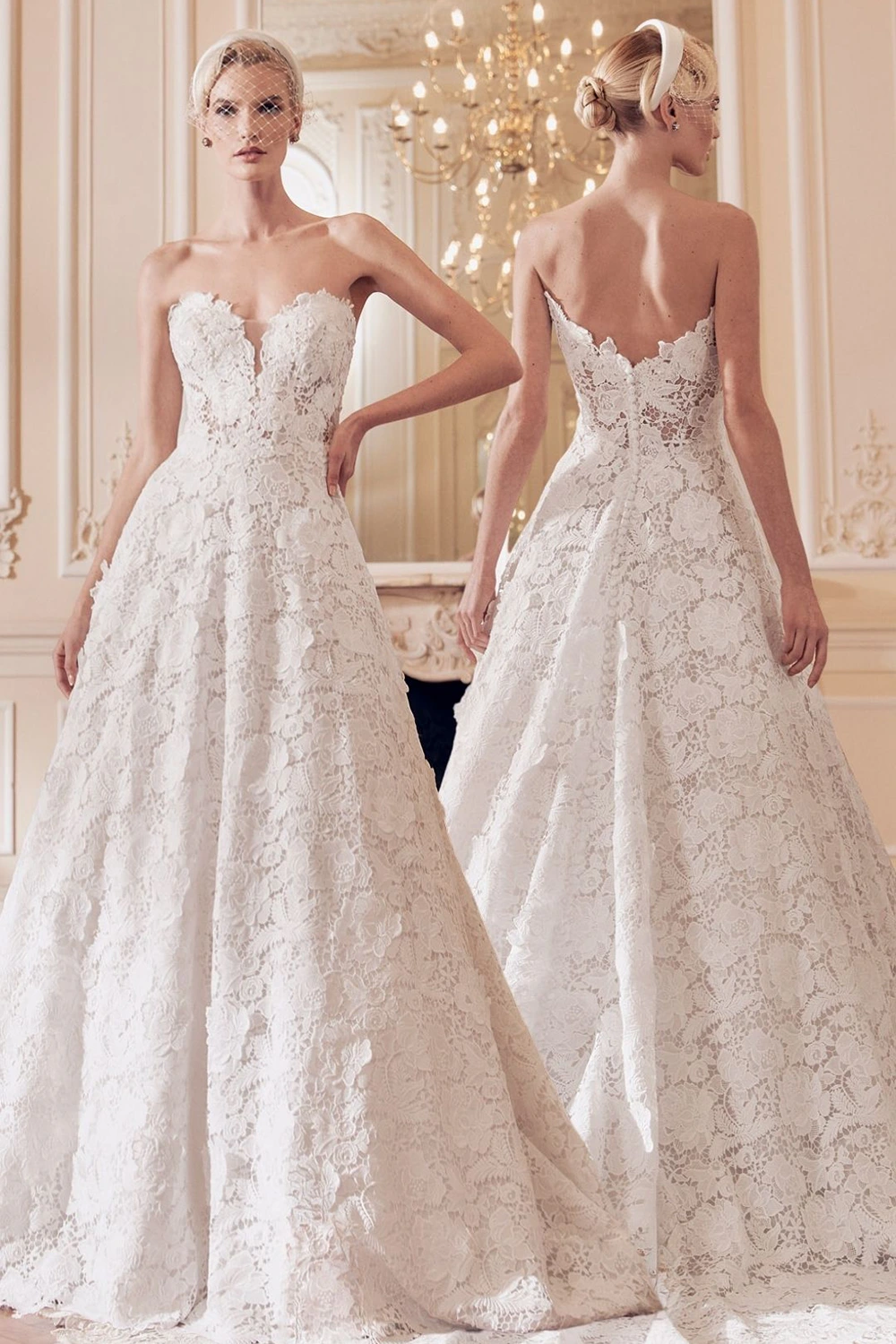 Das Modell Cecilia von Ellis Bridals ist ein fließendes, romantisches Brautkleid aus eleganter Blütenspitze.