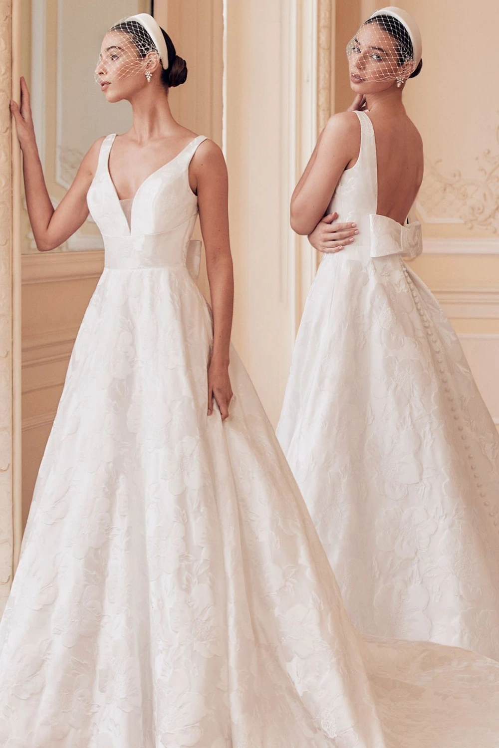 Das Modell Susanna von Ellis Bridals ist ein A-Linien Brautleid aus luxuriösem Jacquard und einem breitem Bund unter der Brust. Susanna balanciert klassische Romantik mit moderner Schneiderei.