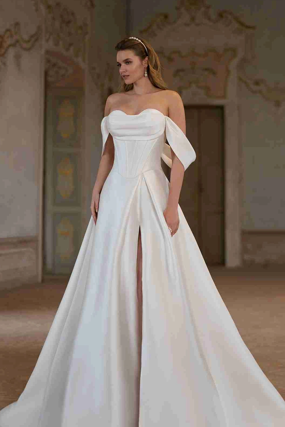 Das Modell Noor (Braut-Top) von Herve Paris ist ein modernes Oberteil aus Mikado mit einer eleganten Knopfleiste am Rücken .