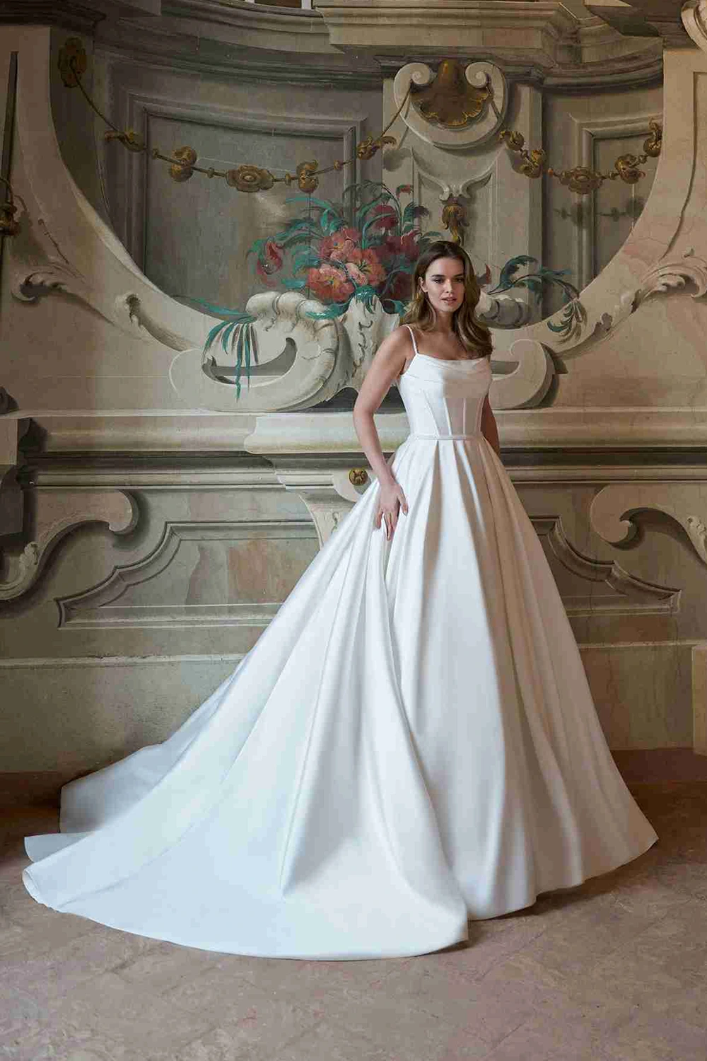 Das Modell Nuala (Braut-Rock) von Herve Paris ist ein voluminöser Kellerfalten-Braut-Rock aus Mikado, der Braut-Rock besticht mit einer langen Schleppe.