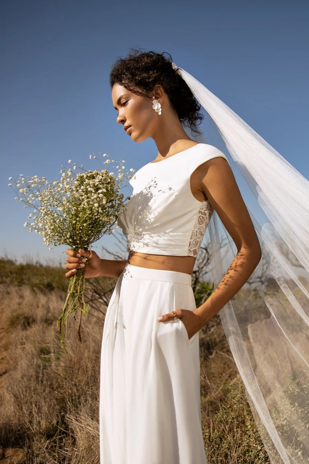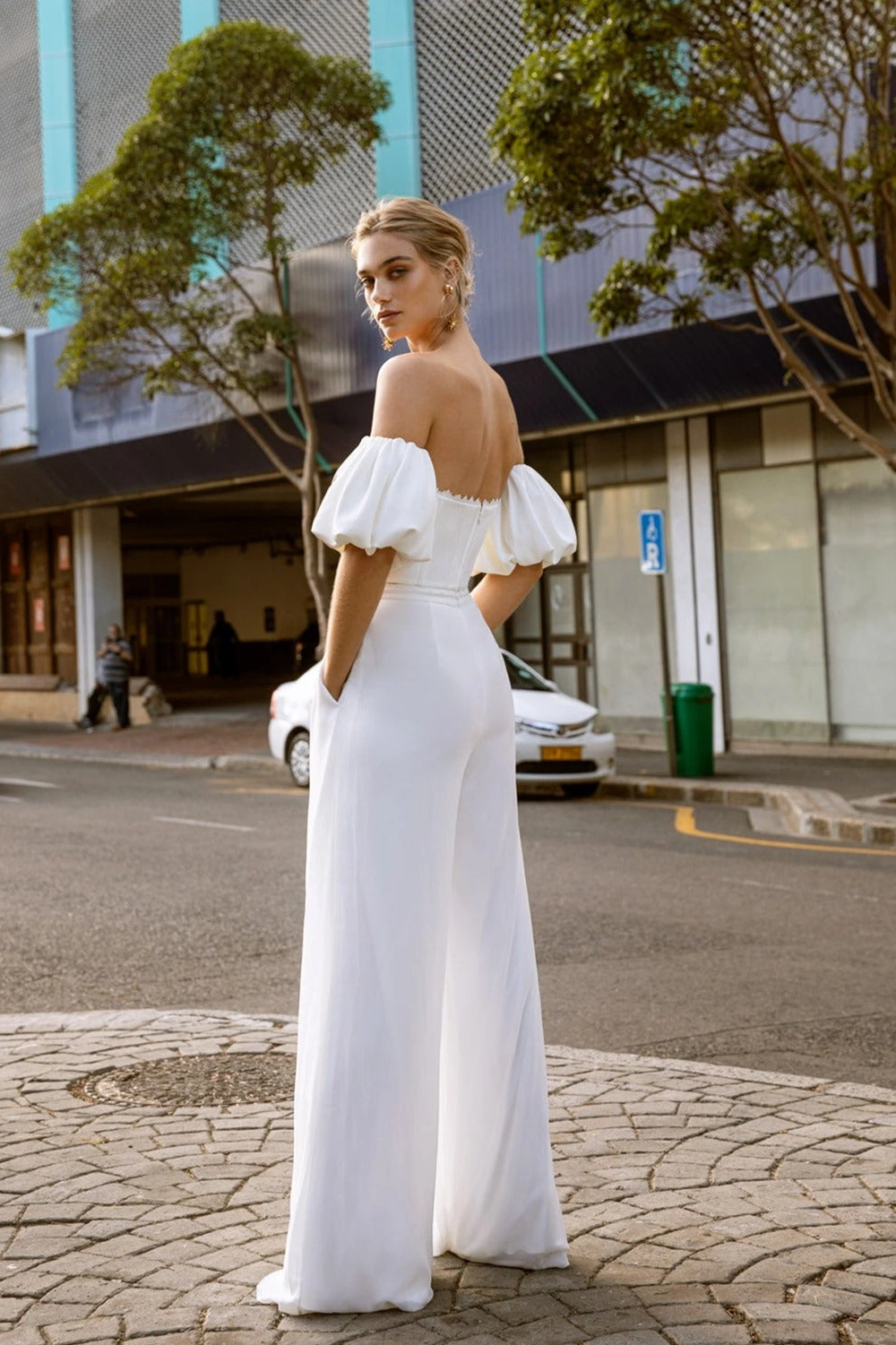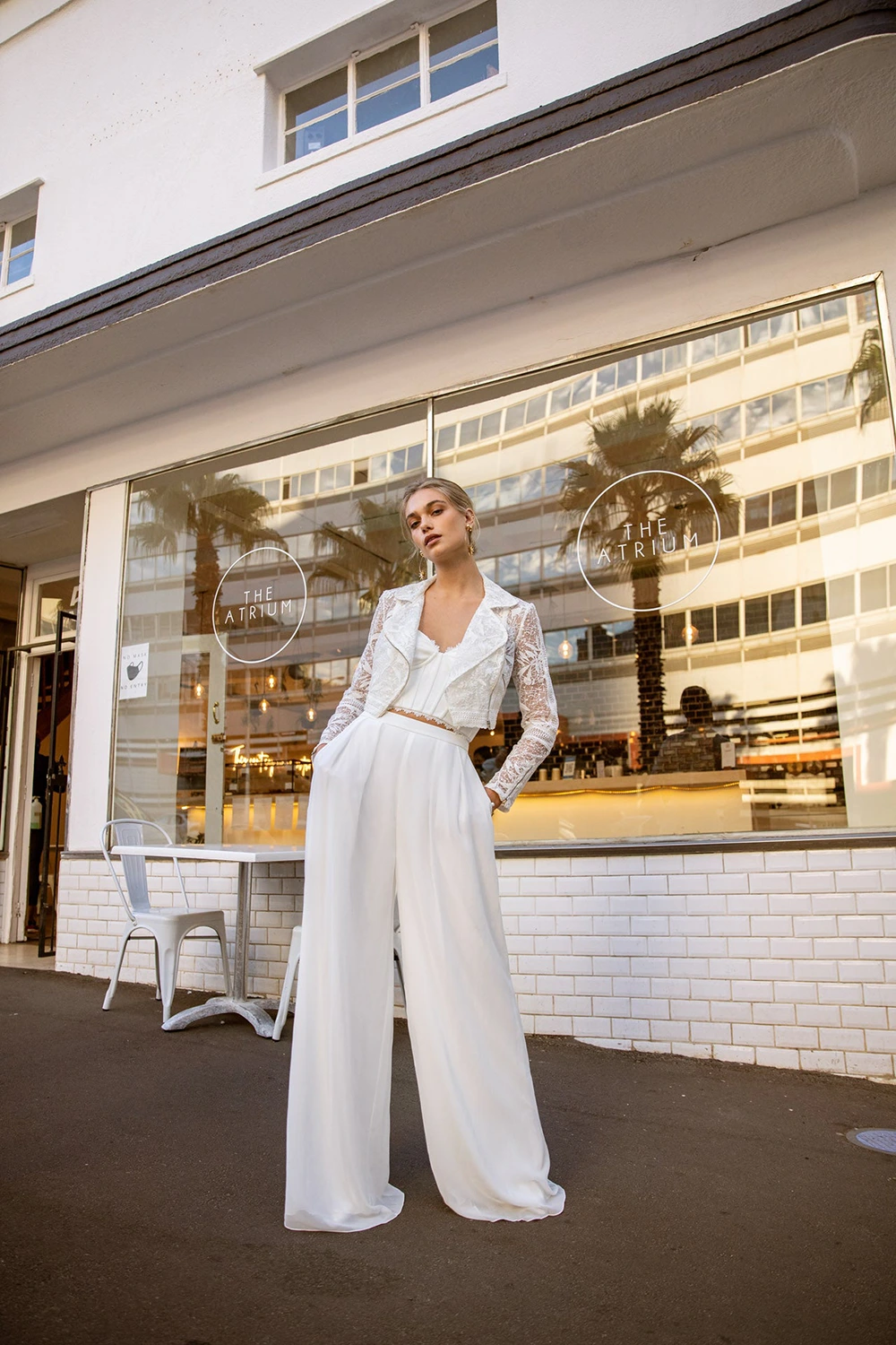 Das Modell Leigh von Kelsey Rose ist eine moderne Brauthose, die sich super mit verschiedenen Braut-Tops kombinieren lässt.