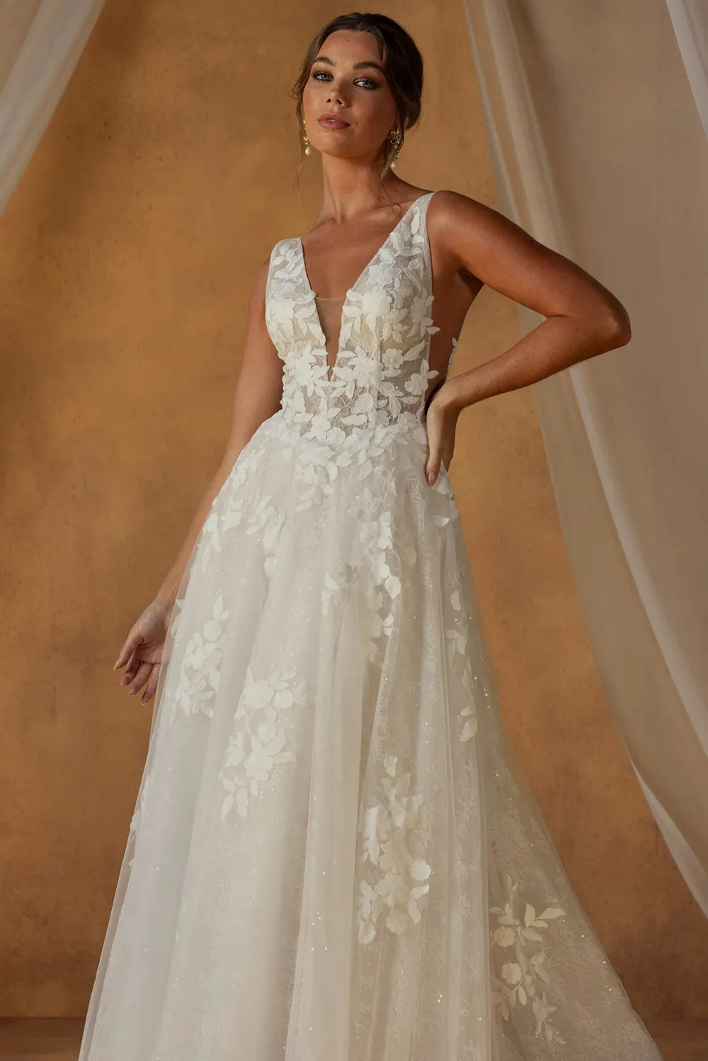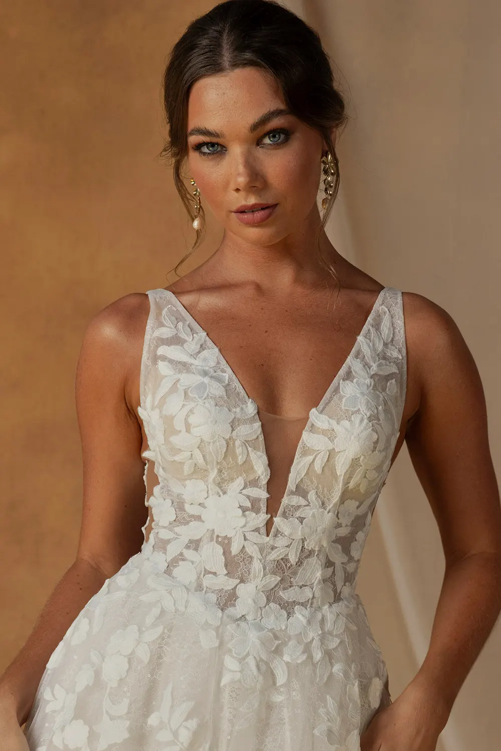 Das Modell Neely von Madi Lane ist ein romantisches Brautkleid mit luftigen Tüllrock.