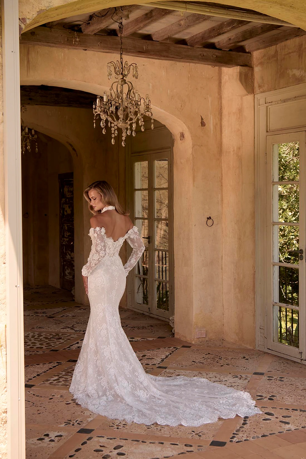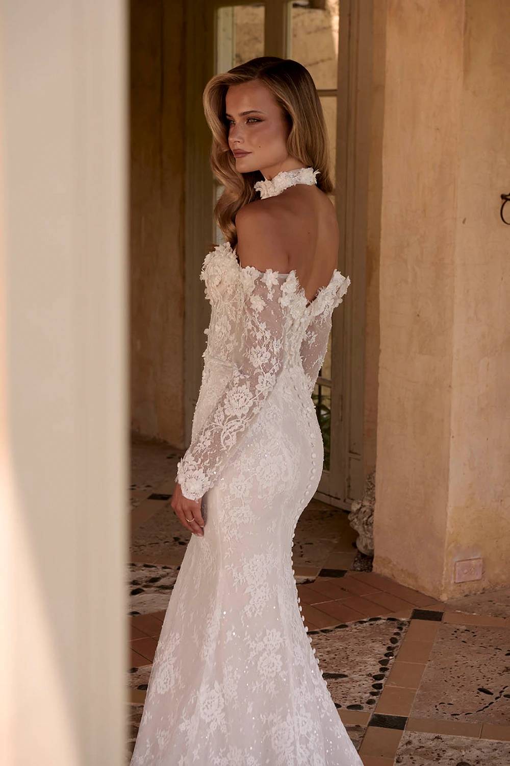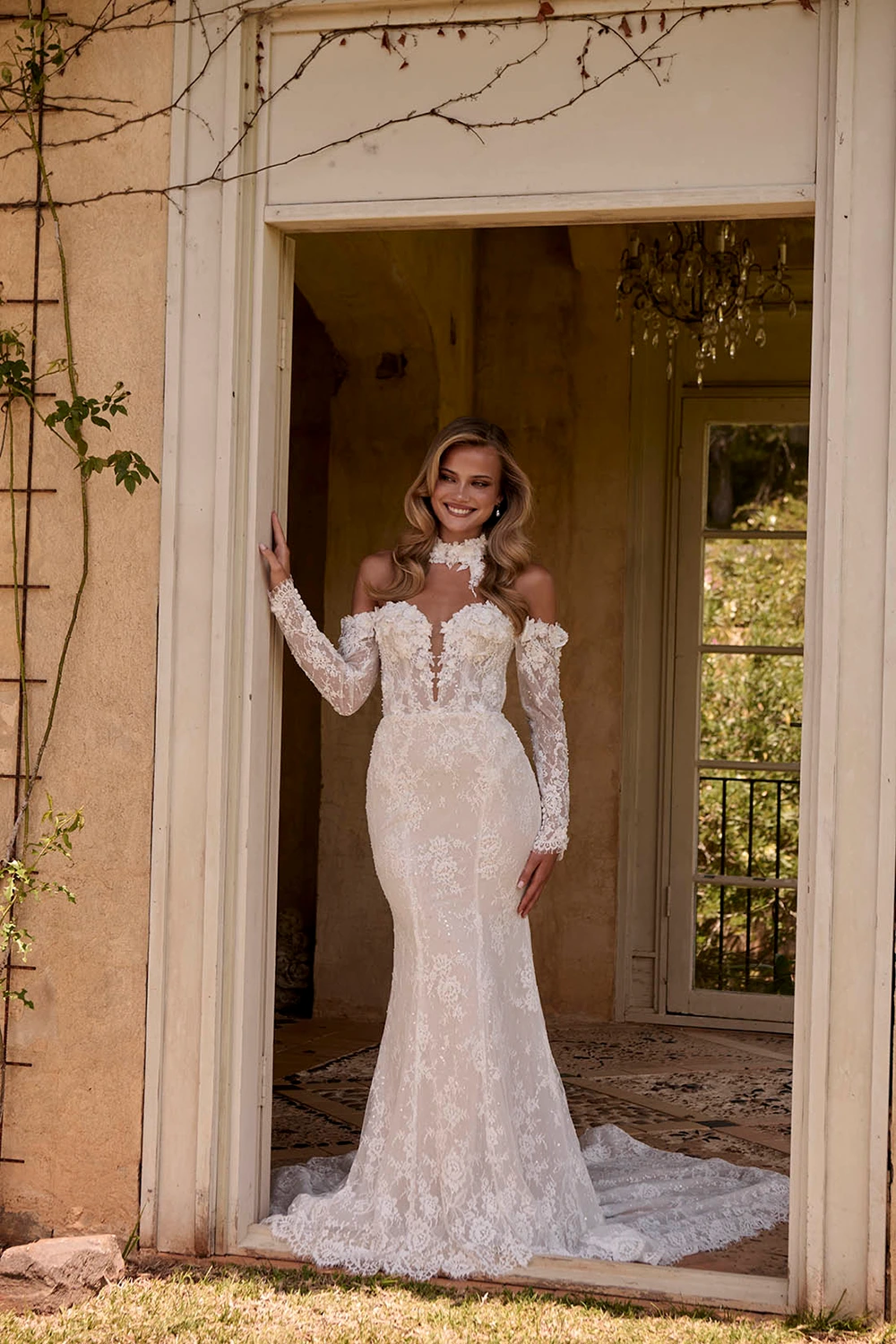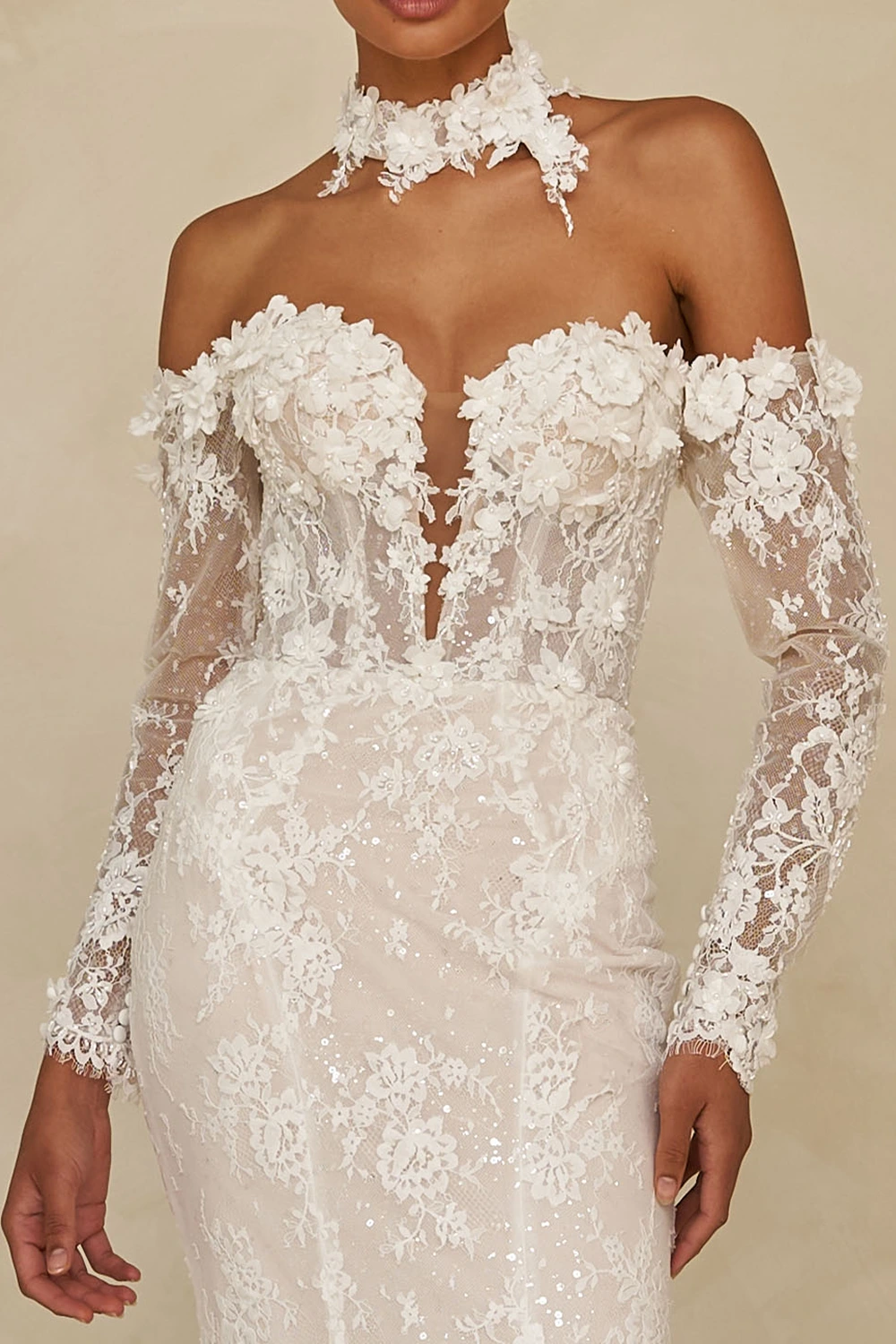 - Abnehmbare, schulterfreie Ärmel und ein dazu passender Spitzenkragen