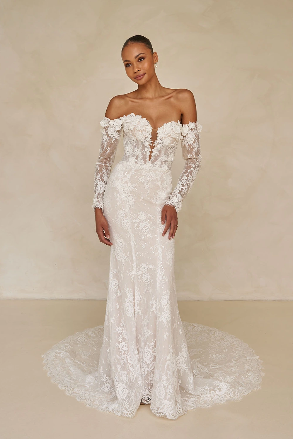 Das Modell Wade von Madi Lane ist ein glamouröses Fit-and-Flare Brautkleid, dass feminine Romantik mit exklusivem Style vereint.