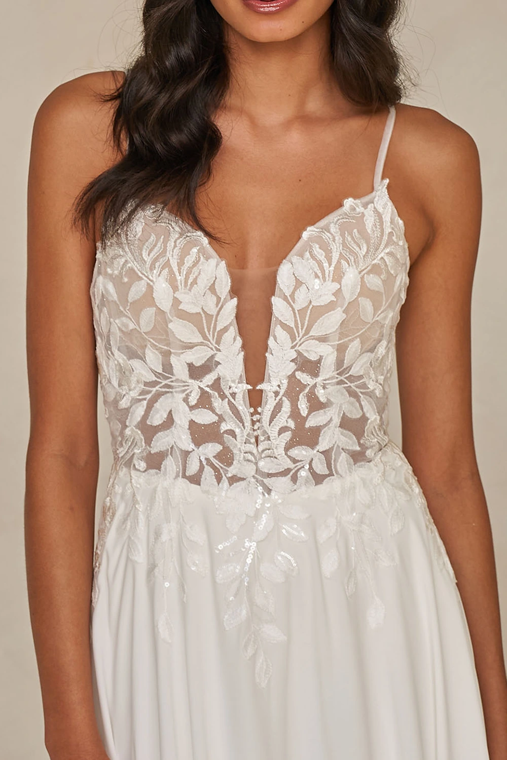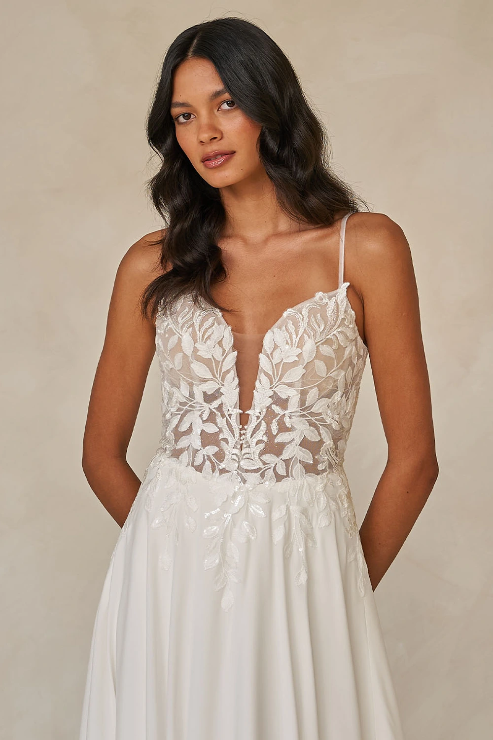Das Modell Westwood von Madi Lane ist ein leichtes Chiffon Kleid mit floraler Stickerei verziert. Das Oberteil zeichnet sich durch einen raffinierten V-Ausschnitt und eine weiche, baskische Taille aus und bietet eine schmeichelhafte Silhouette.