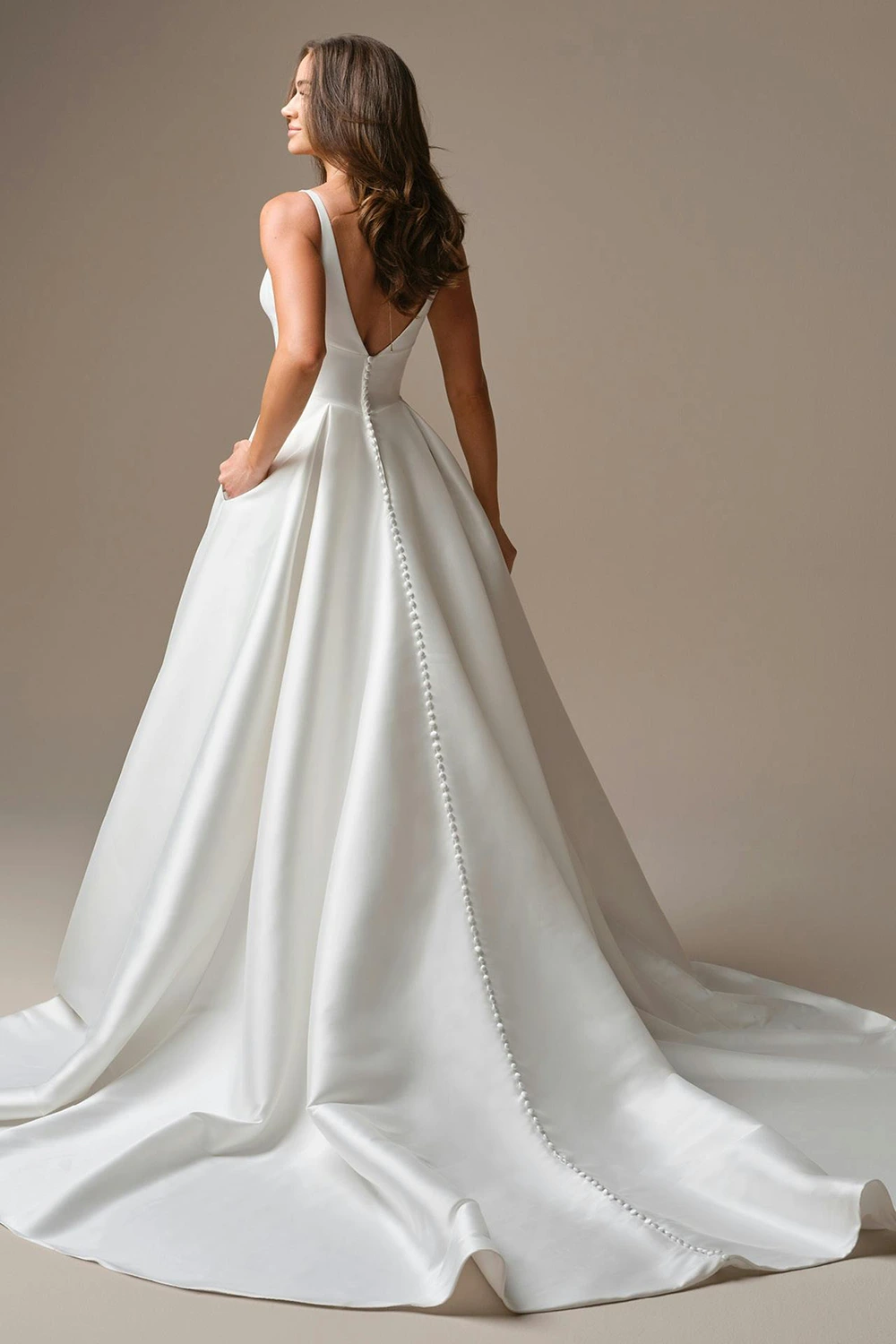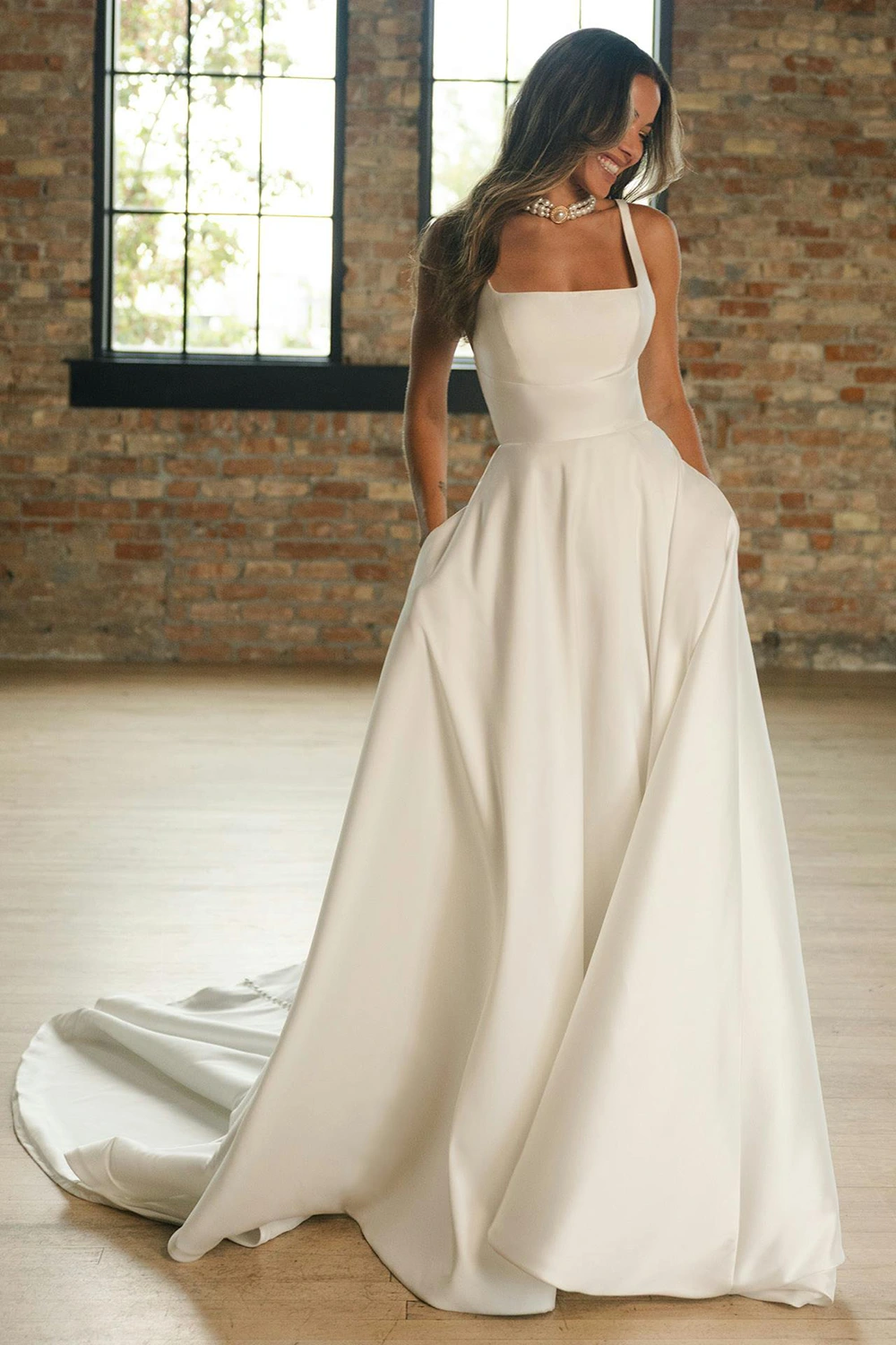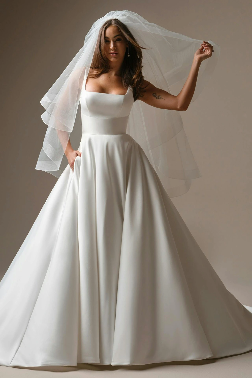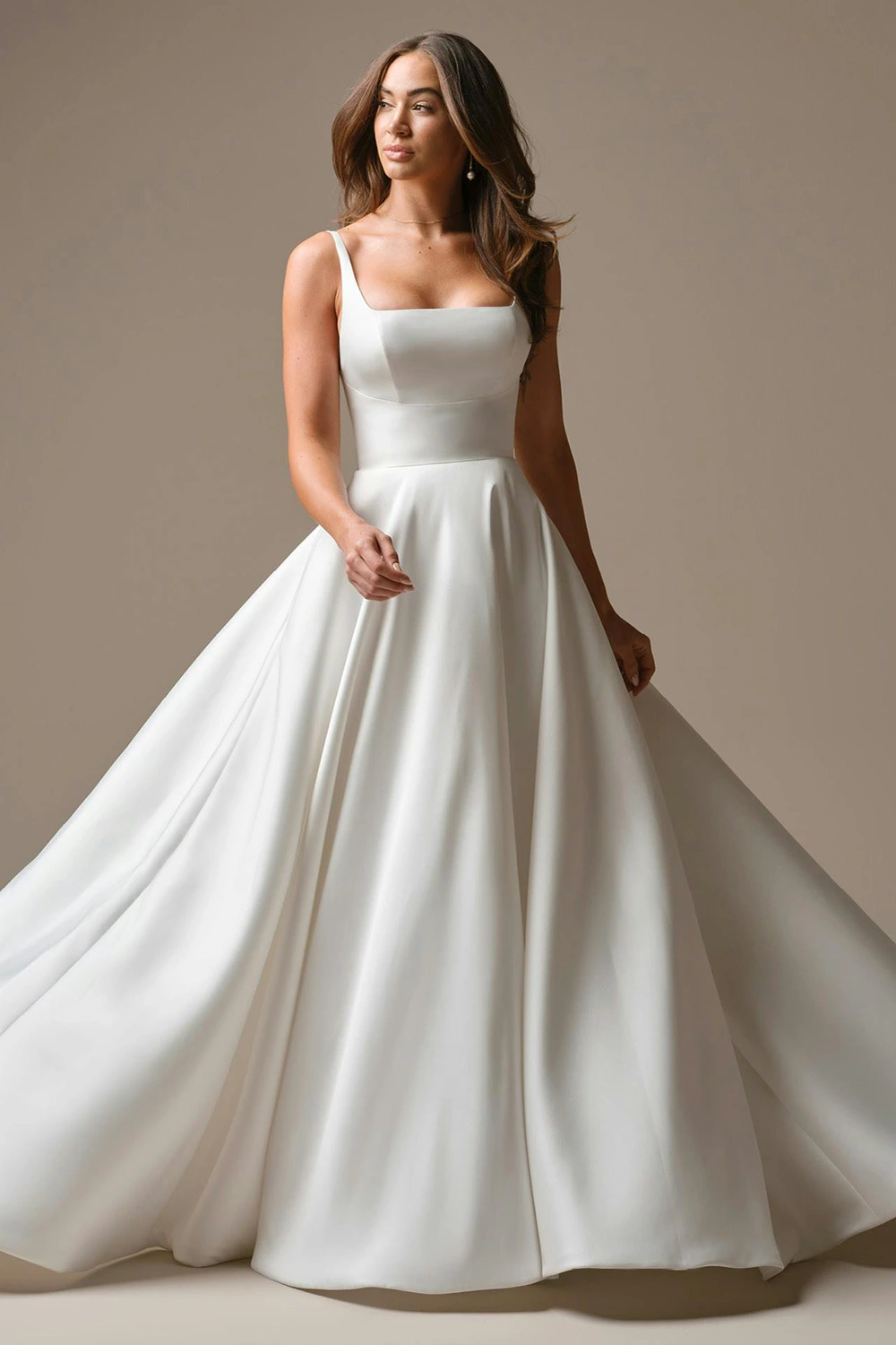 Das Modell Galina von Maggie Sottero ist ein cleanes, voluminöses A-Linien Brautkleid aus Mikado-Seide mit einem Carré-Ausschnitt .