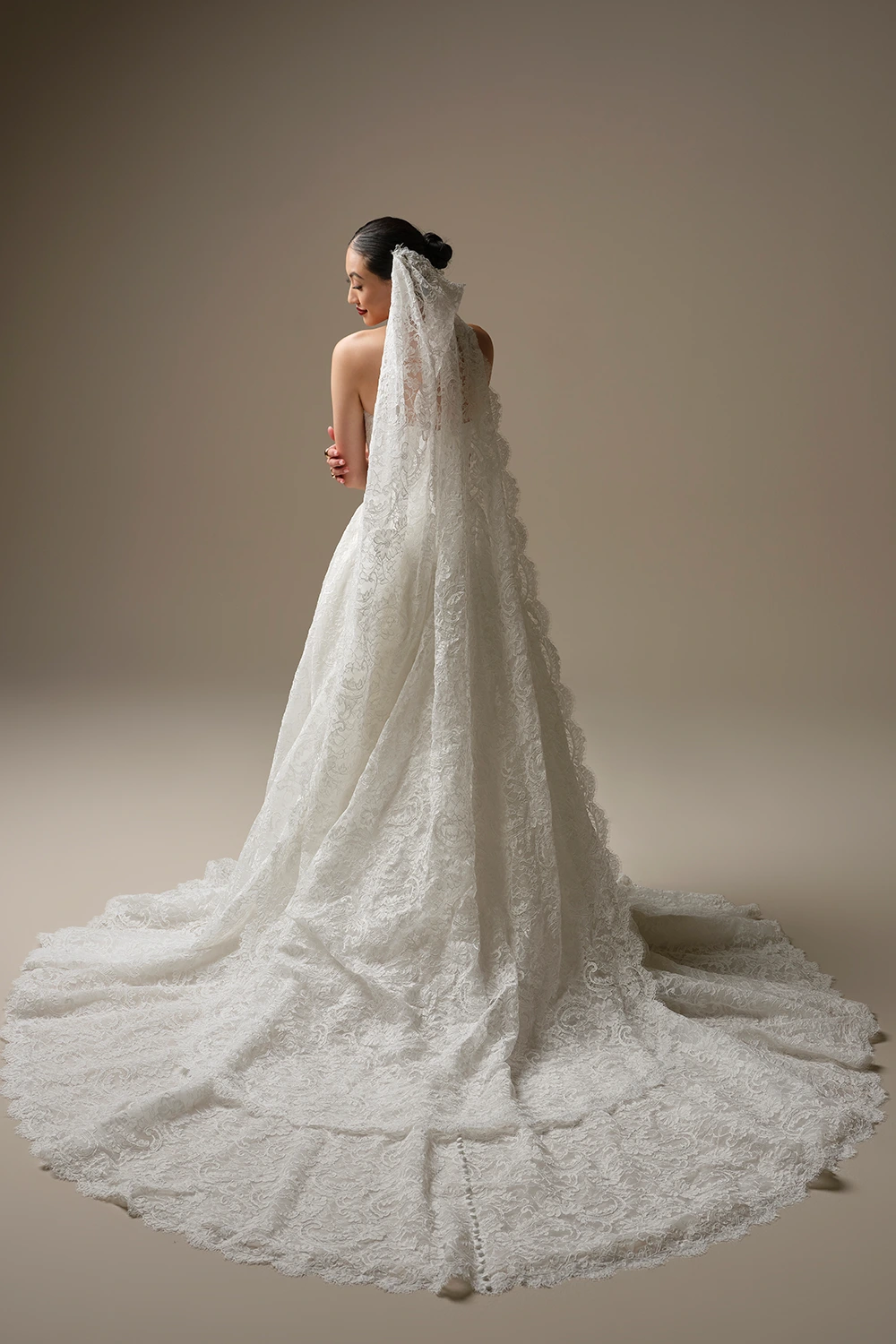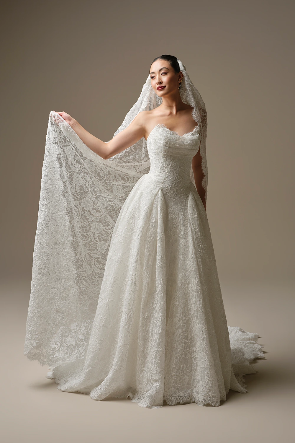 Das Modell Tamar von Sottero und Midgley ist ein weit ausgestelltes Brautkleid im Ballkleid Stil, das gesamte Kleid ist mit Spitze besetzt.