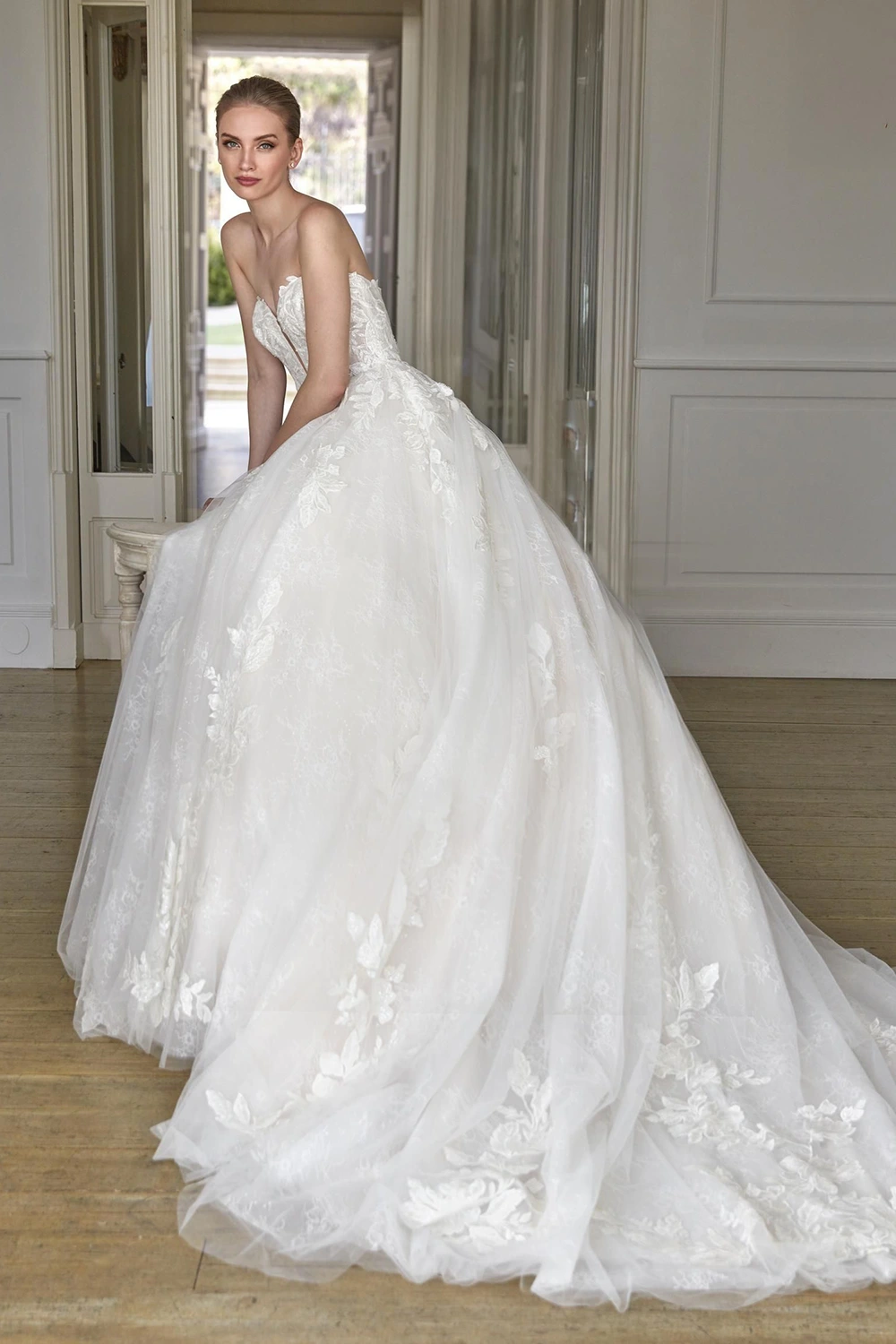 Das Modell Vannia von St. Patrick ist ein florales Prinzessinnen Brautkleid mit einer Corsage welche mit einem romantischen Herzausschnitt besticht.